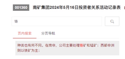 南矿集团:在南非,公司主要处理铬矿和锰矿。
