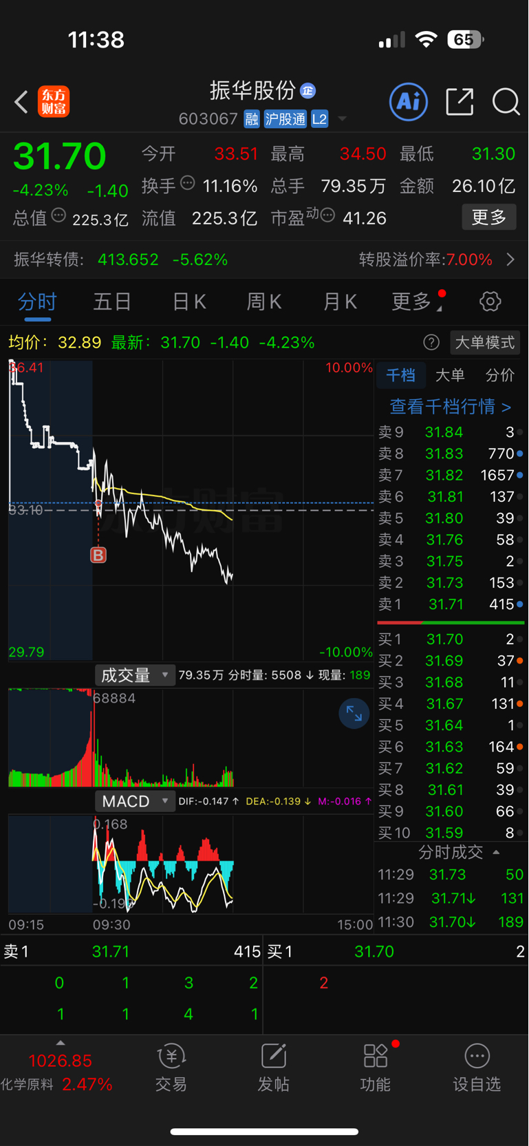 $振华股份(SH603067)$ 是我的错,我一进主力就出货了,目前亏五个点左右