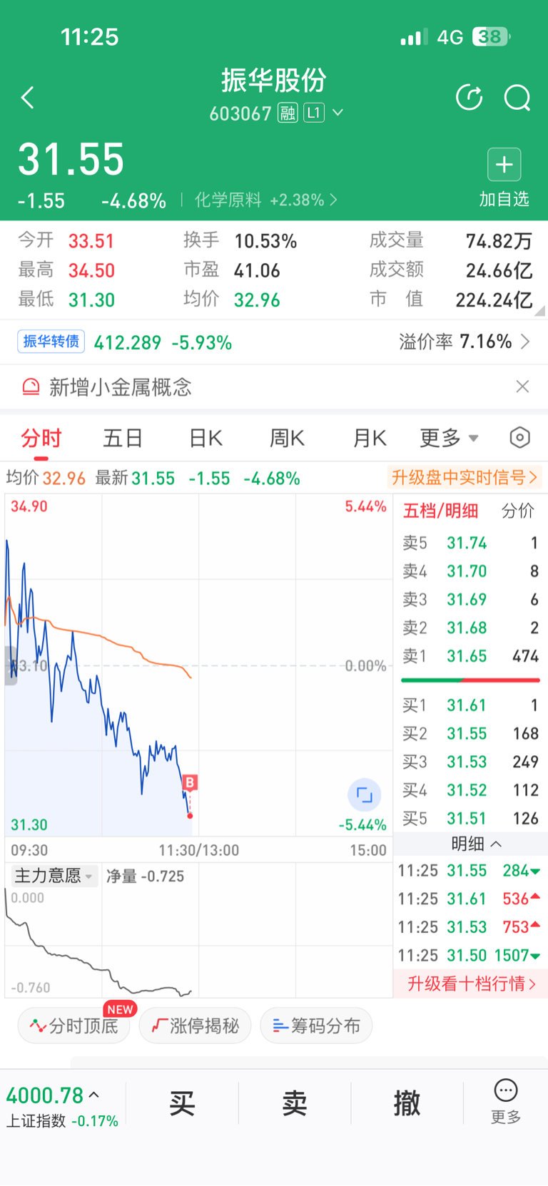 $振华股份(SH603067)$ 化工核心,下午拉回去