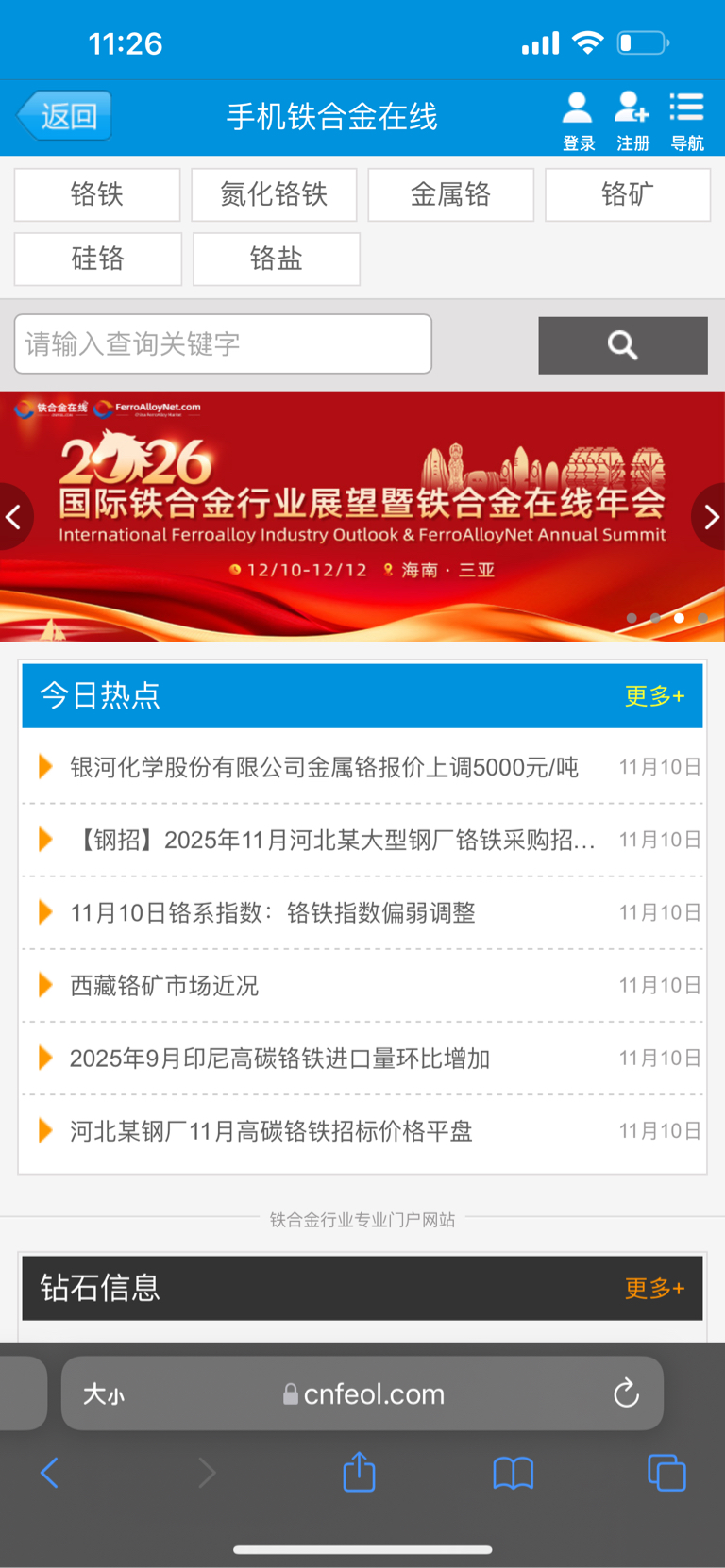 百度搜铁合金在线,然后就能看到!涨价是真的!