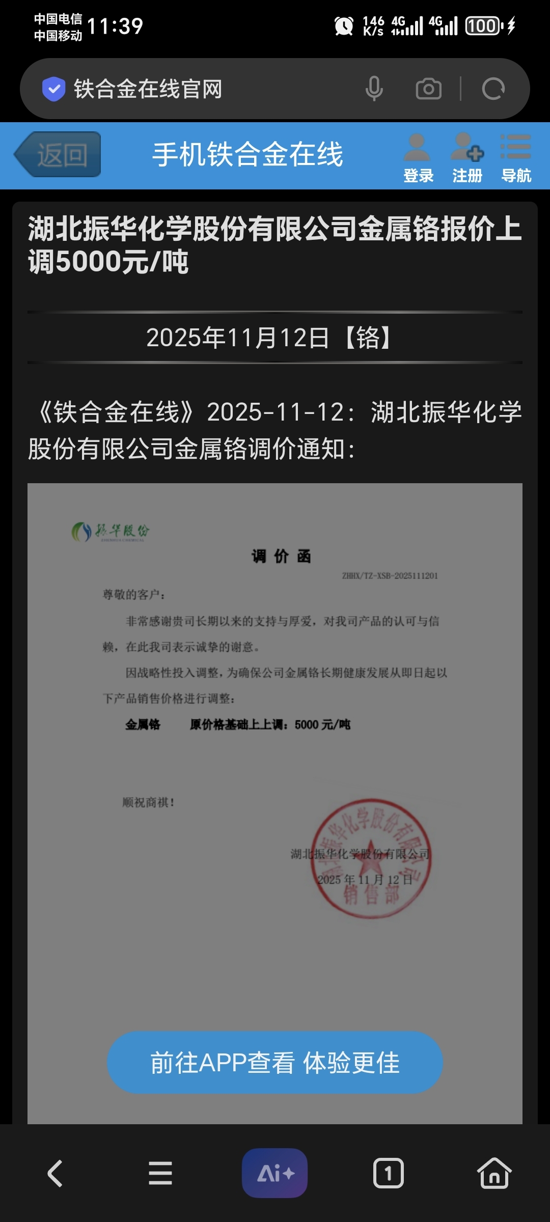 $振华股份(SH603067)$ 涨价函来了,被吓出去的估计又要抢回来