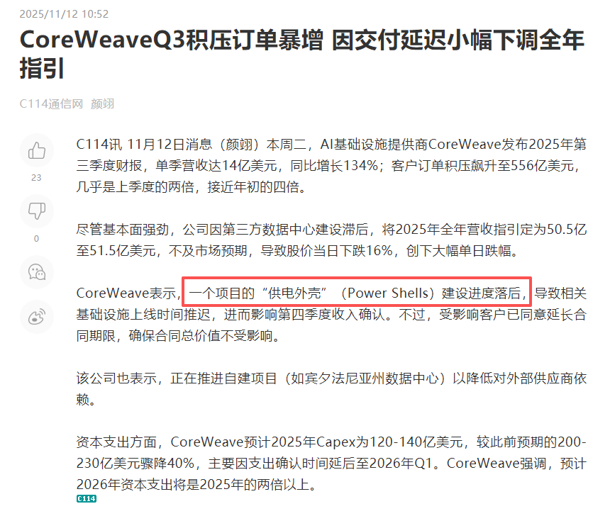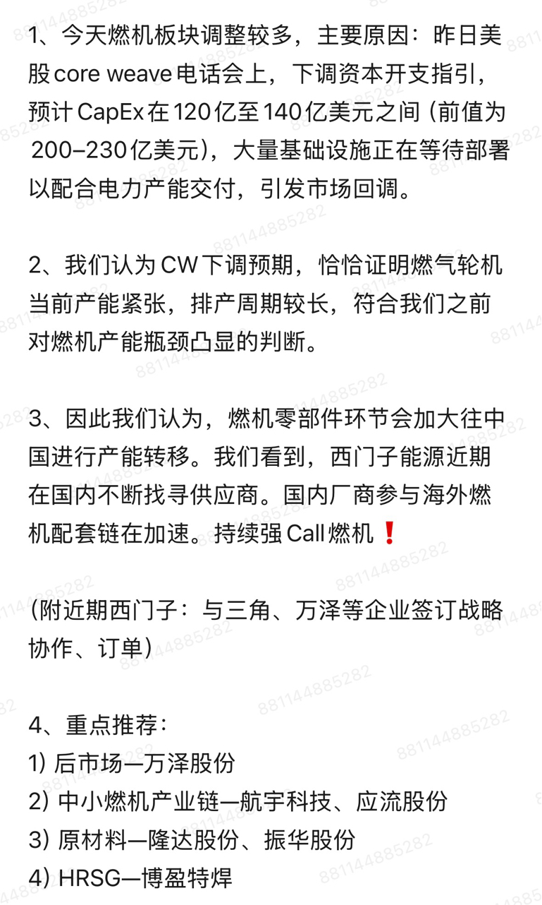 美股BE、CRWV昨晚大跌+A股燃气轮机板块大跌的原因