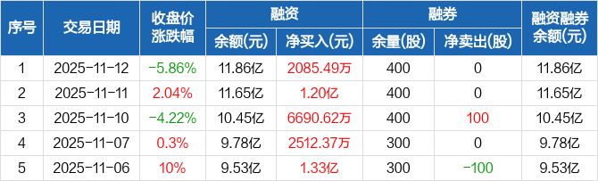 振华股份:融资余额11.86亿元,创历史新高(11-12)