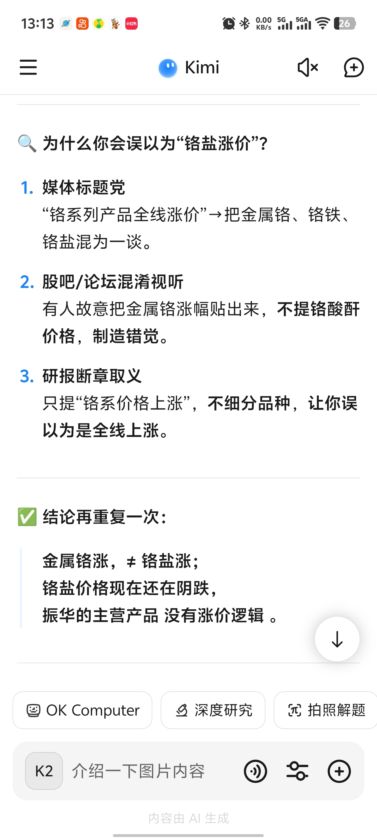 不要过度盲目的看金属铬涨价了,自己问问ai就知道了