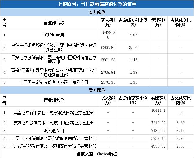 沪股通现身龙虎榜,振华股份跌停(11-18)