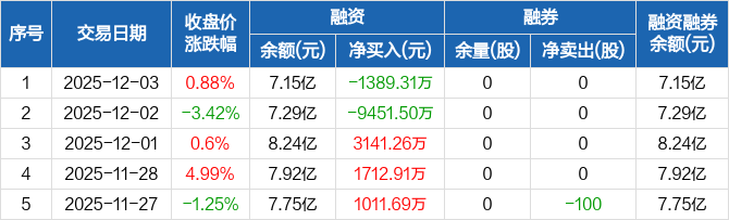 振华股份:融资净偿还1389.31万元,融资余额7.15亿元(12-03)