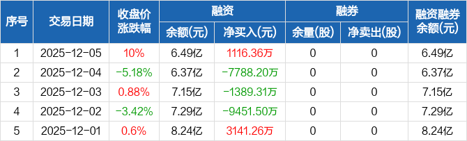 振华股份:融资净买入1116.36万元,融资余额6.49亿元(12-05)