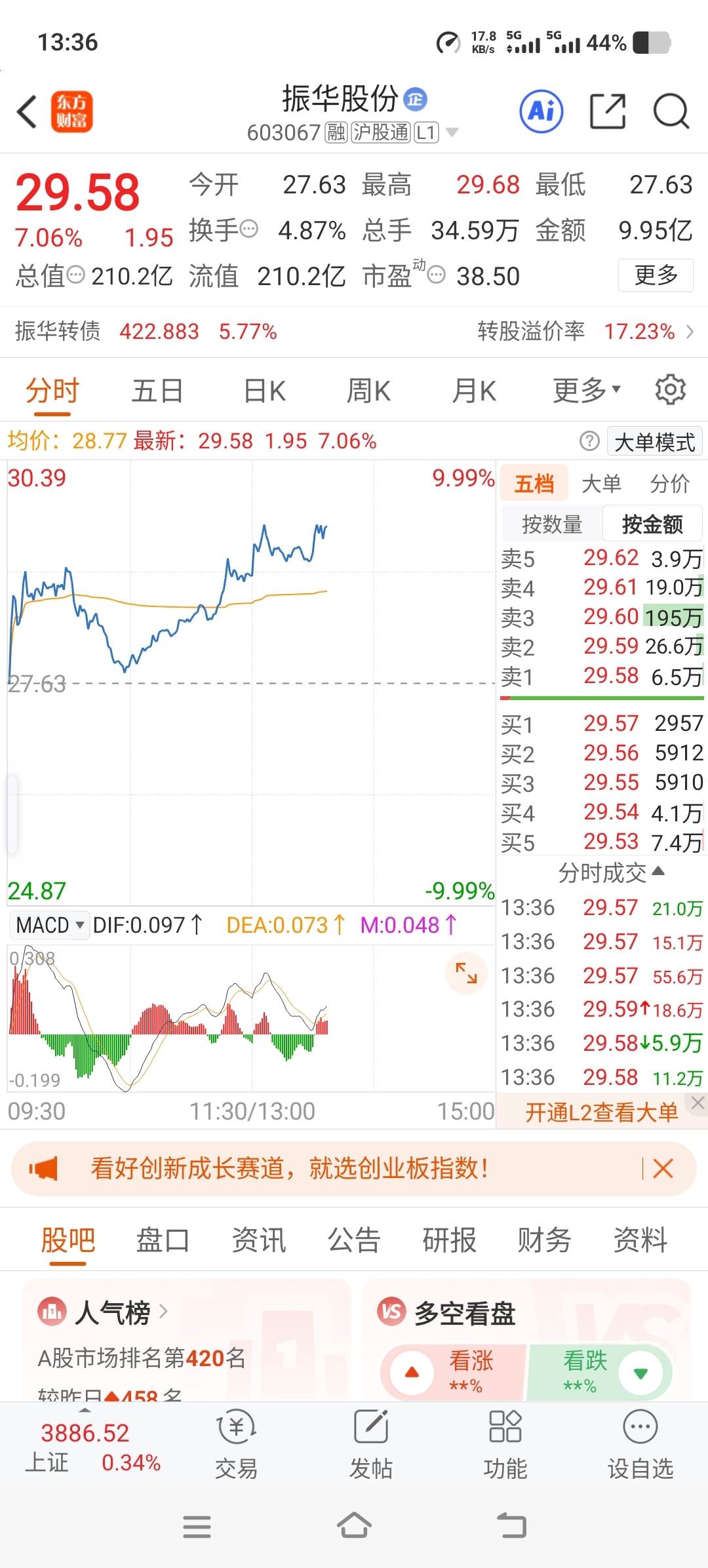 $振华股份(SH603067)$ 不要涨停,只需涨不停