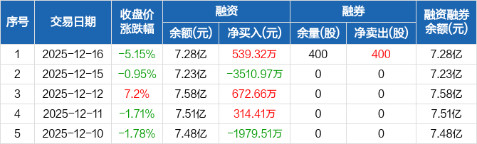 振华股份:融资净买入539.32万元,融资余额7.28亿元(12-16)
