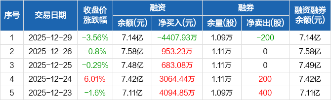 振华股份:融资净偿还4407.93万元,融资余额7.14亿元(12-29)