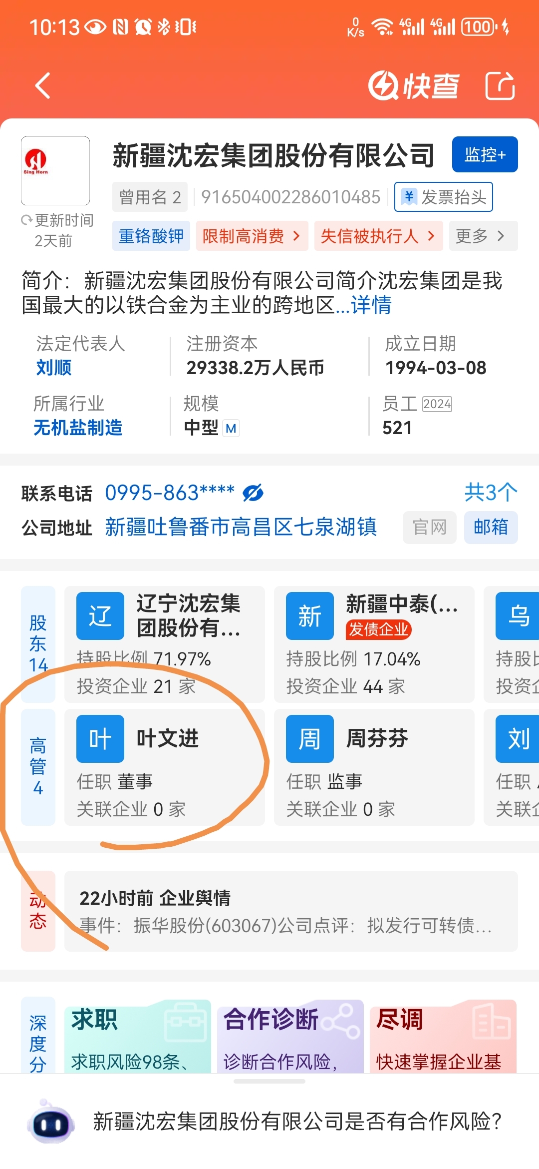$振华股份(SH603067)$ 新疆沈宏高管已完成变更,振华派出技术副总工进驻,技改先行。