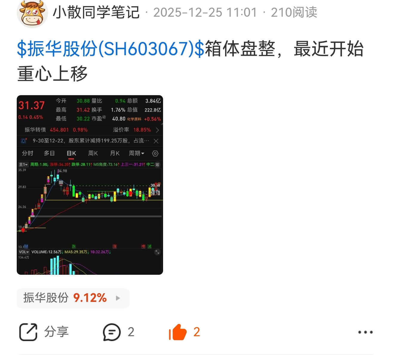 $振华股份(SH603067)$ 25日到现在低吸的也不错