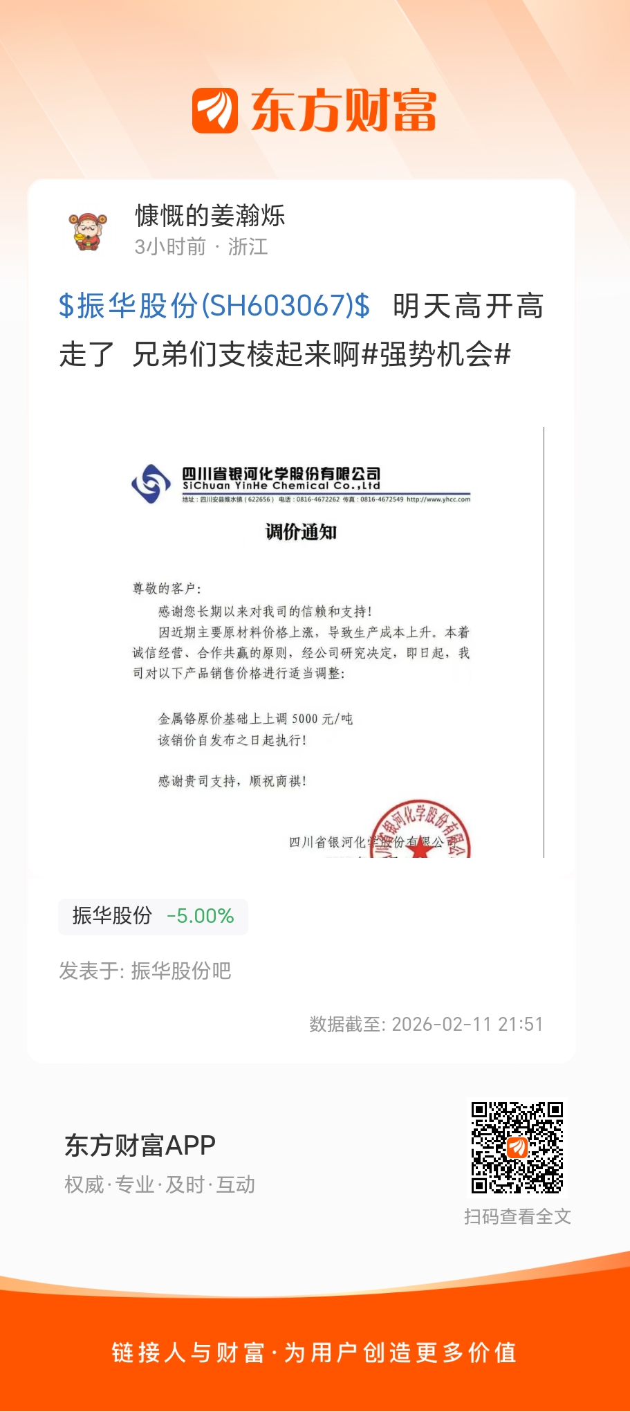 $振华股份(SH603067)$  明天高开高走了  兄弟们支棱起来啊#强势机会#