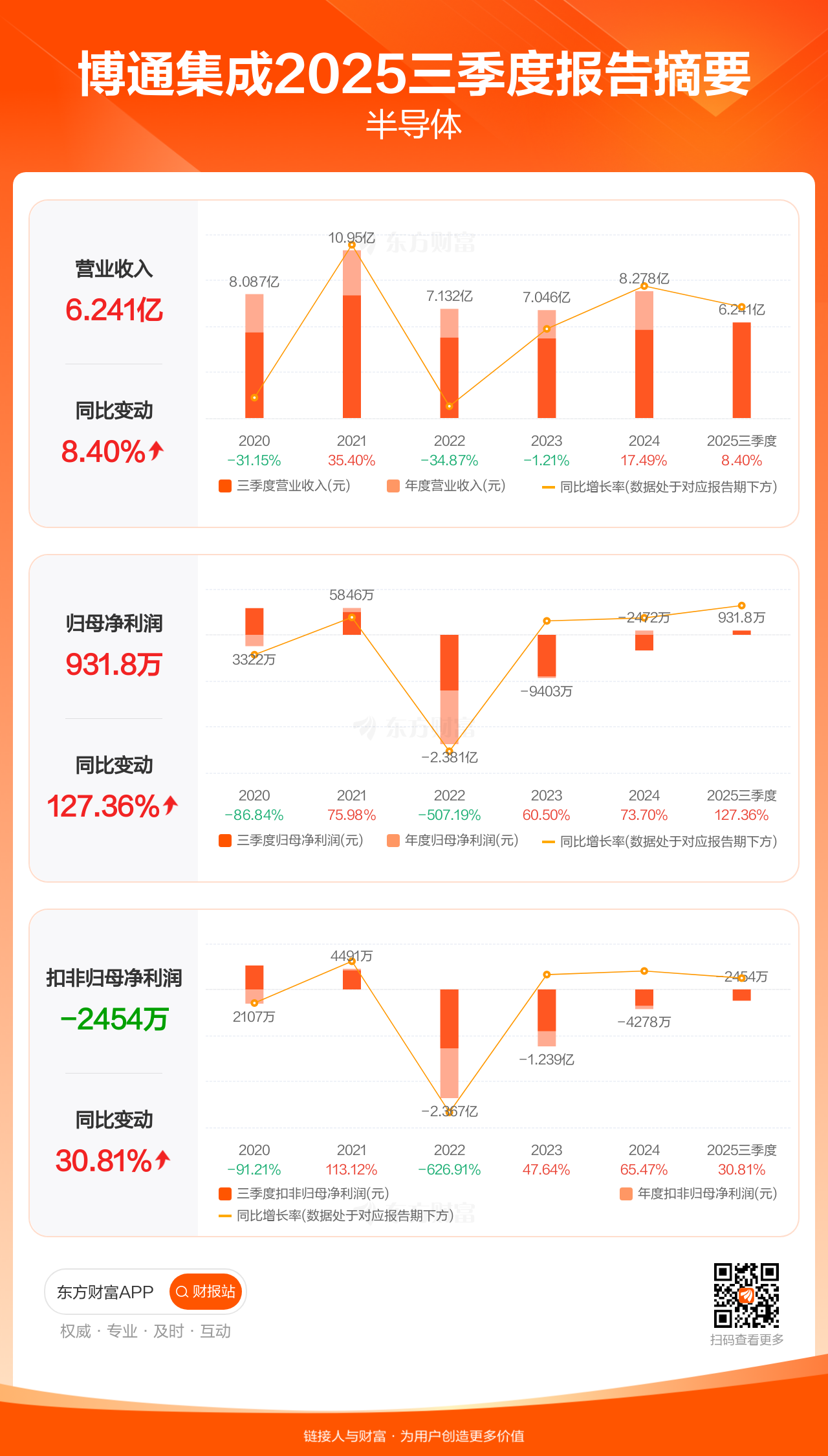 图解财报:博通集成前三季归母净利润931.78万元,同比增长127.36%