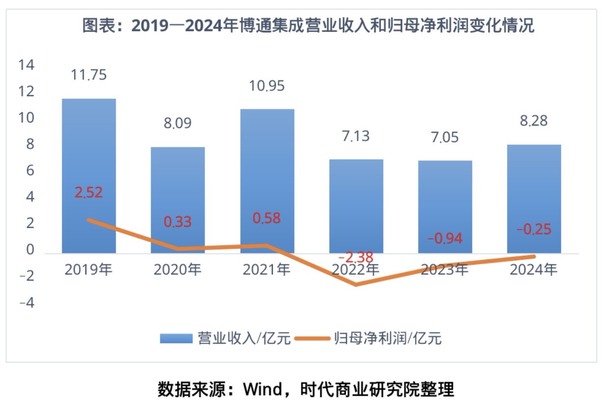 作为ETC芯片龙头企业,博通集成正经历众多转型期科技公司的共性考验:短期扭亏易,长期主营业务持续盈利难。2024年,虽然博通集成实现了8.28亿元的营业收入,但归母净利润和扣非净利润均已连亏三年。