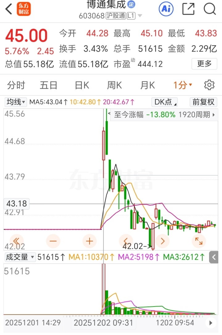 $博通集成(SH603068)$ 1分钟成交2.29亿!不可能是散户买的