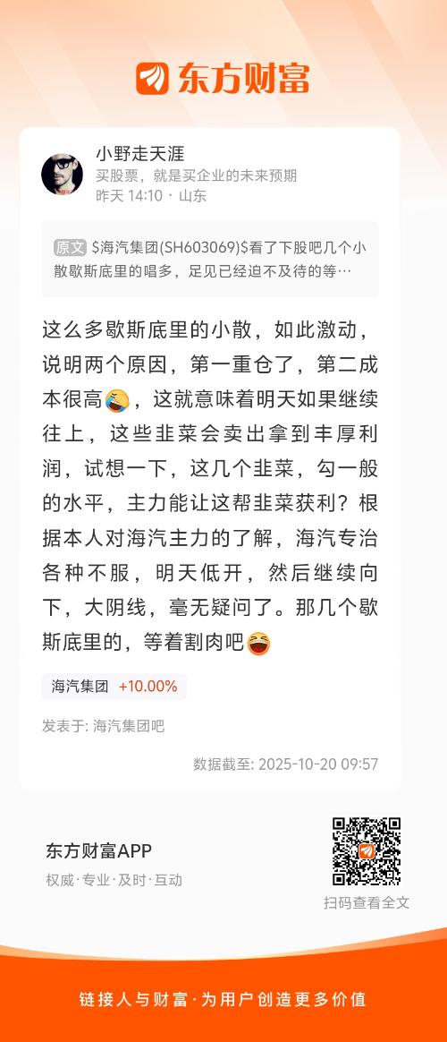 温馨提示: 1.根据《证券法》规定,禁止编造、传播虚假信息或者误导性信息,扰乱证券市场;2.用户在本社区发表的所有资料、言论等仅代表个人观点,与本网站立场无关,不对您构成任何投资建议。用户应基于自己的独立判断,自行决定证券投资并承担相应风险。《东方财富社区管理规定》