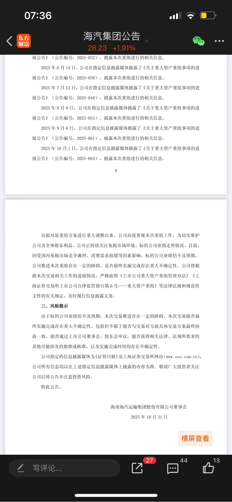 $海汽集团(SH603069)$ 例行提示而已,说明还是要重组,利好