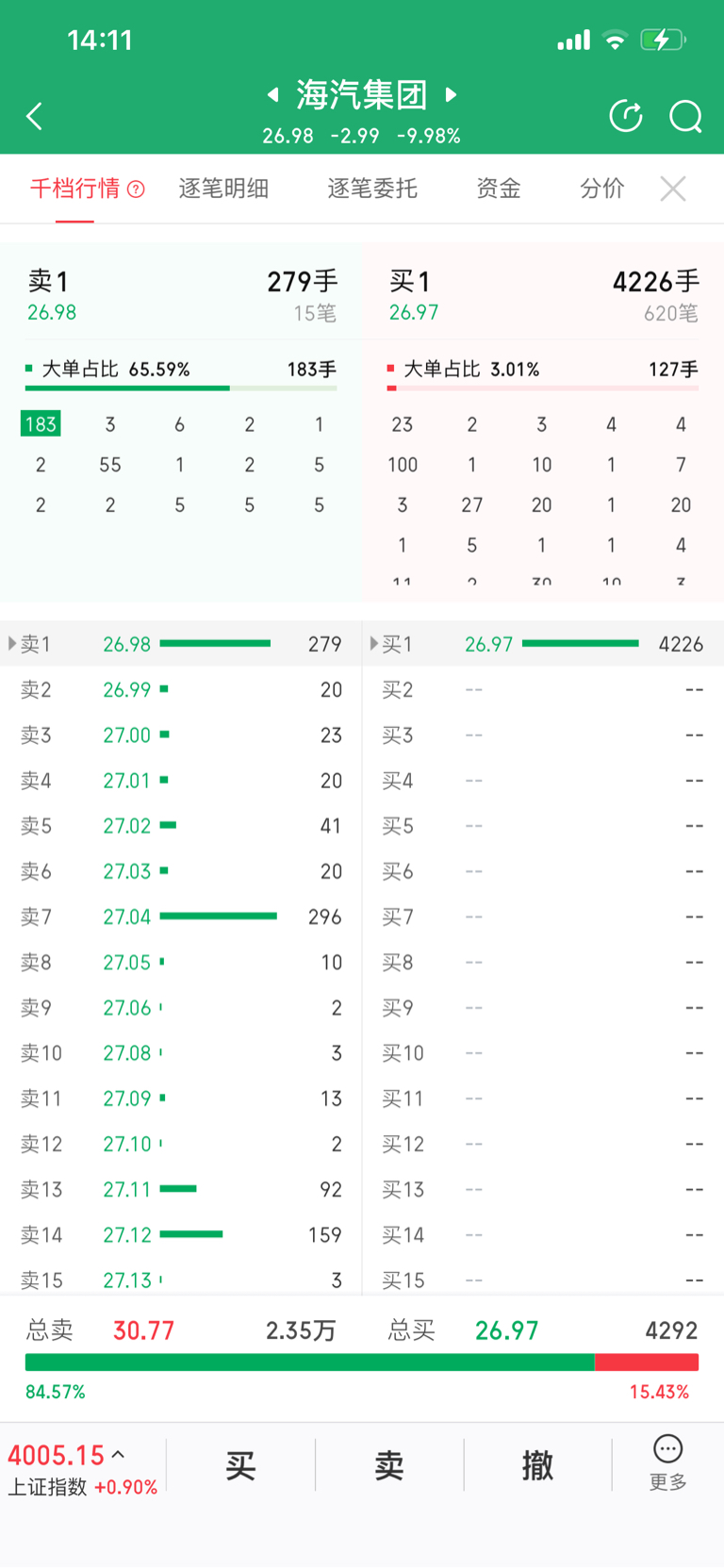 $海汽集团(SH603069)$ 跌停价上全是散户在坚守