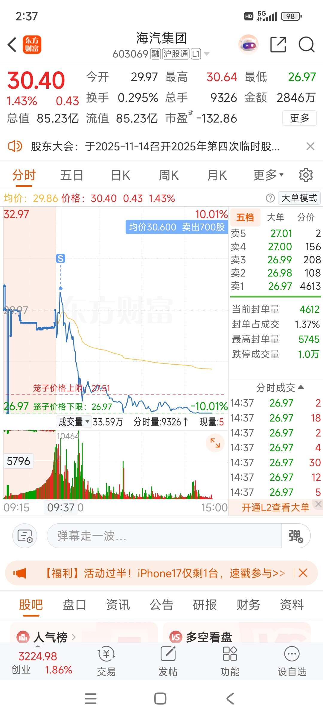 $海汽集团(SH603069)$ 还好没贪,不然喜提12个点大面