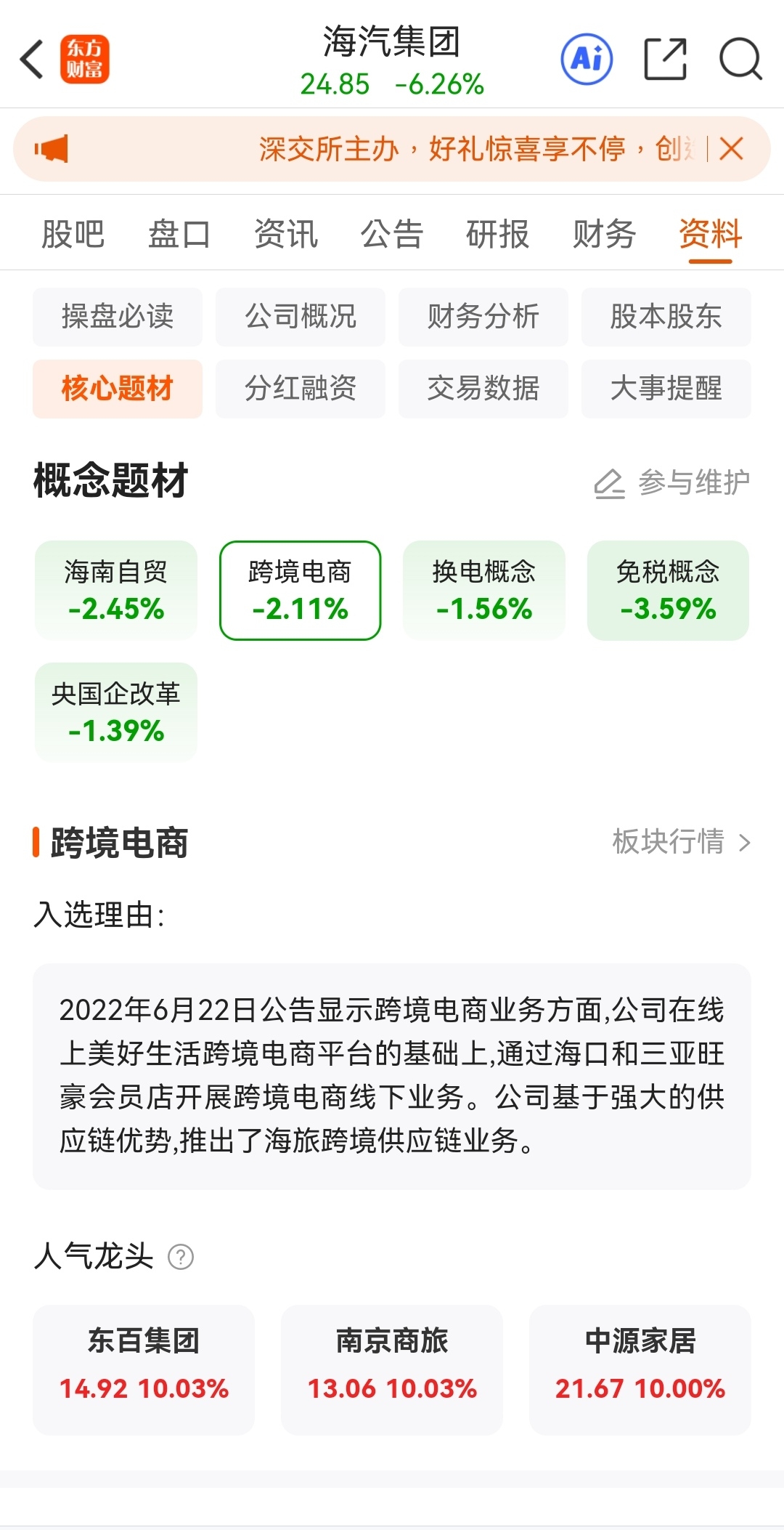 $海汽集团(SH603069)$ 杂毛跨境电商涨停,正宗海南电商跌了6.26个点,唯一的原因是有人故意压盘。