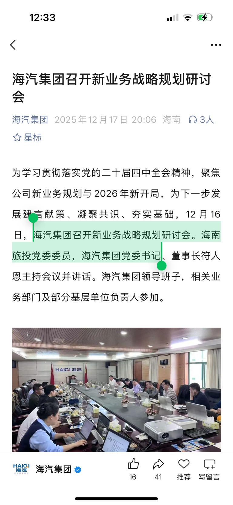 $海汽集团(SH603069)$ 主力你看不到明年的规划会议,海南旅投高层和海汽一块开会的吗