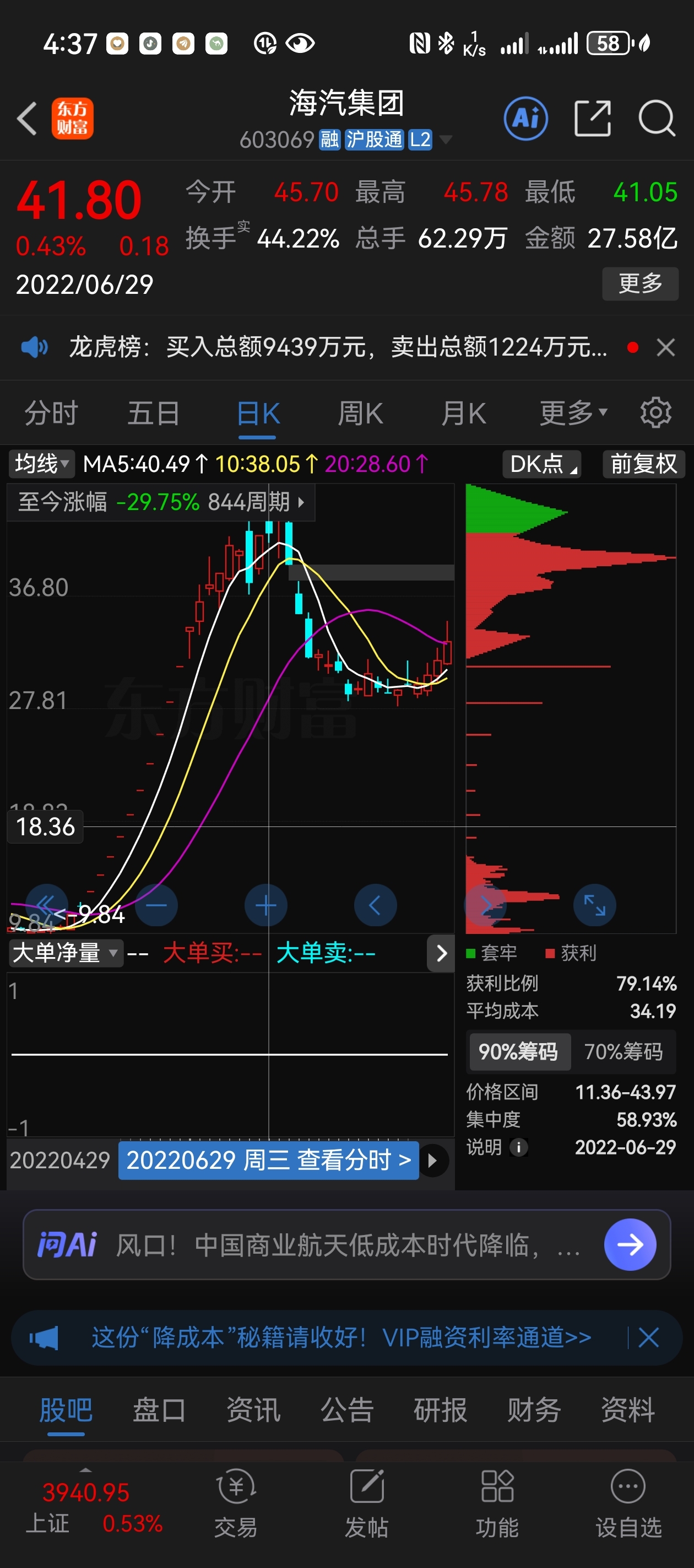 $海汽集团(SH603069)$ 今天海南板块两个板,还不算太差。今天理想的就是海汽中免高开高走,可惜不如意啊,能红盘收就不容易了,这个庄一直很狗。历史高换手表现得不太好。明天要谨慎对待。海汽真的,,,马超走了以后就没有马了。