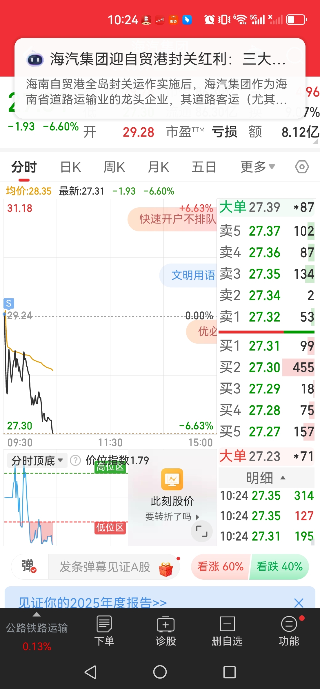$海汽集团(SH603069)$ 感谢主力让我不亏出来