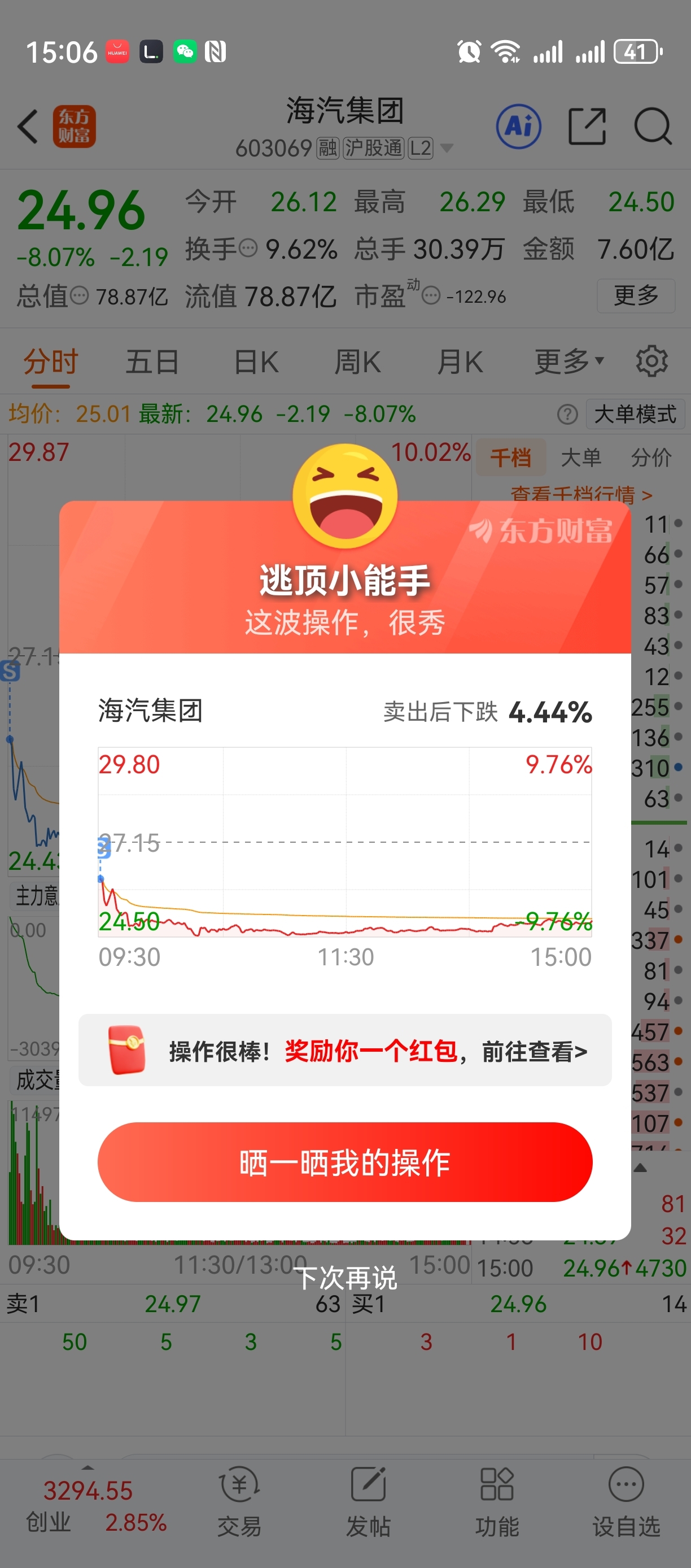 $海汽集团(SH603069)$ 会买的是徒弟,会卖的是师傅,卖了买浙江东方获利4.9%,弥补亏损