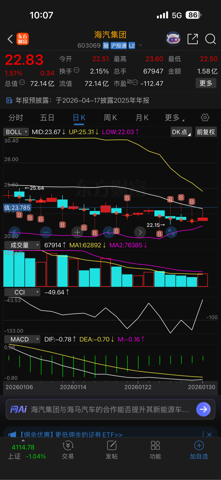 $海汽集团(SH603069)$ 差一毛钱回本