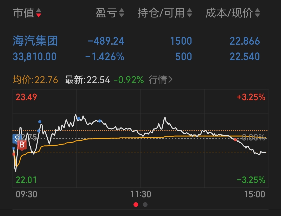 23出了一半,做好卖飞的准备,海汽下午又被大盘带下来了。海汽不亏还赚400元但是