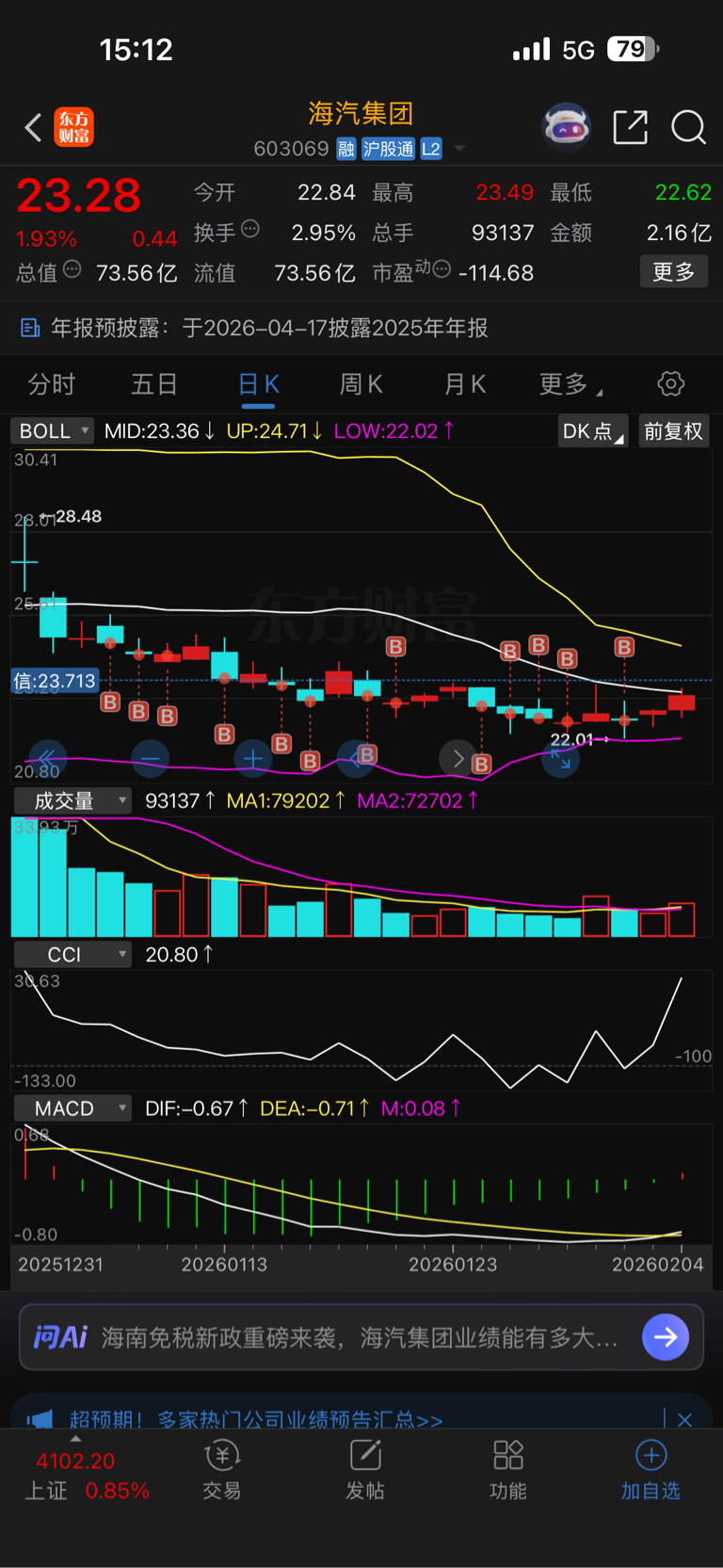 $海汽集团(SH603069)$ 明天回本