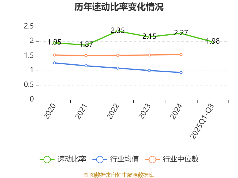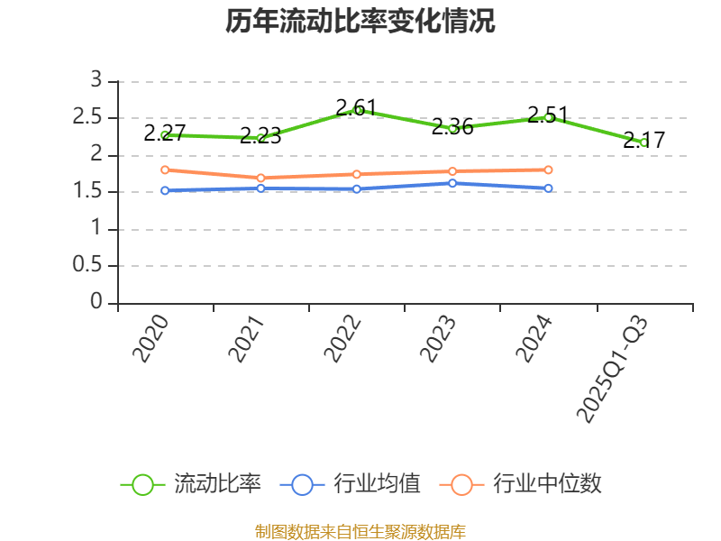 2025年前三季度,公司流动比率为2.17,速动比率为1.98。