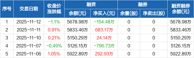 万控智造:融资净偿还154.48万元,融资余额5678.98万元(11-12)