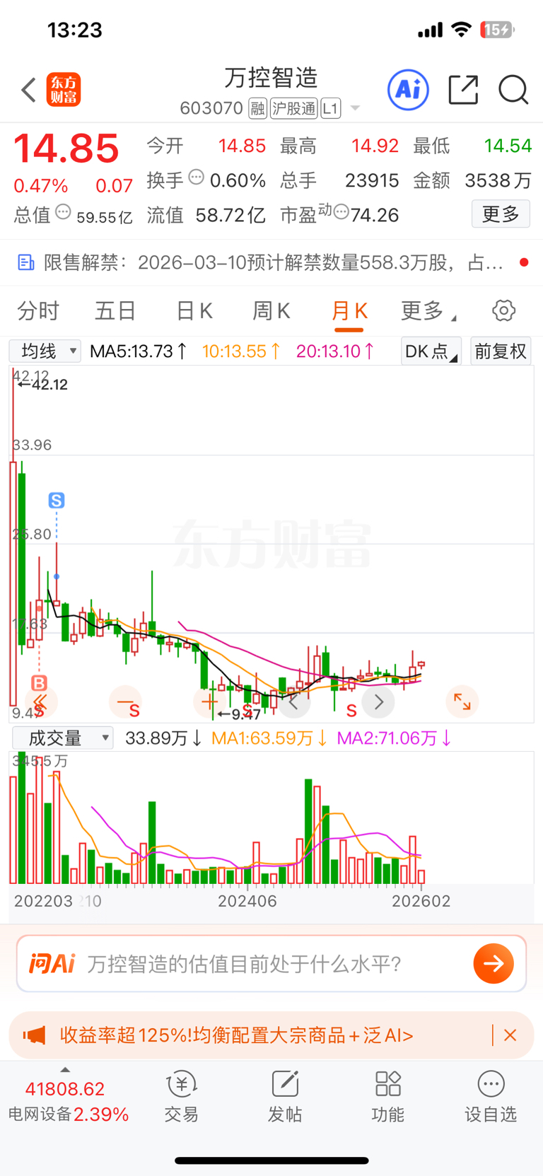 $万控智造(SH603070)$ 这么看我真是卖在了最高点