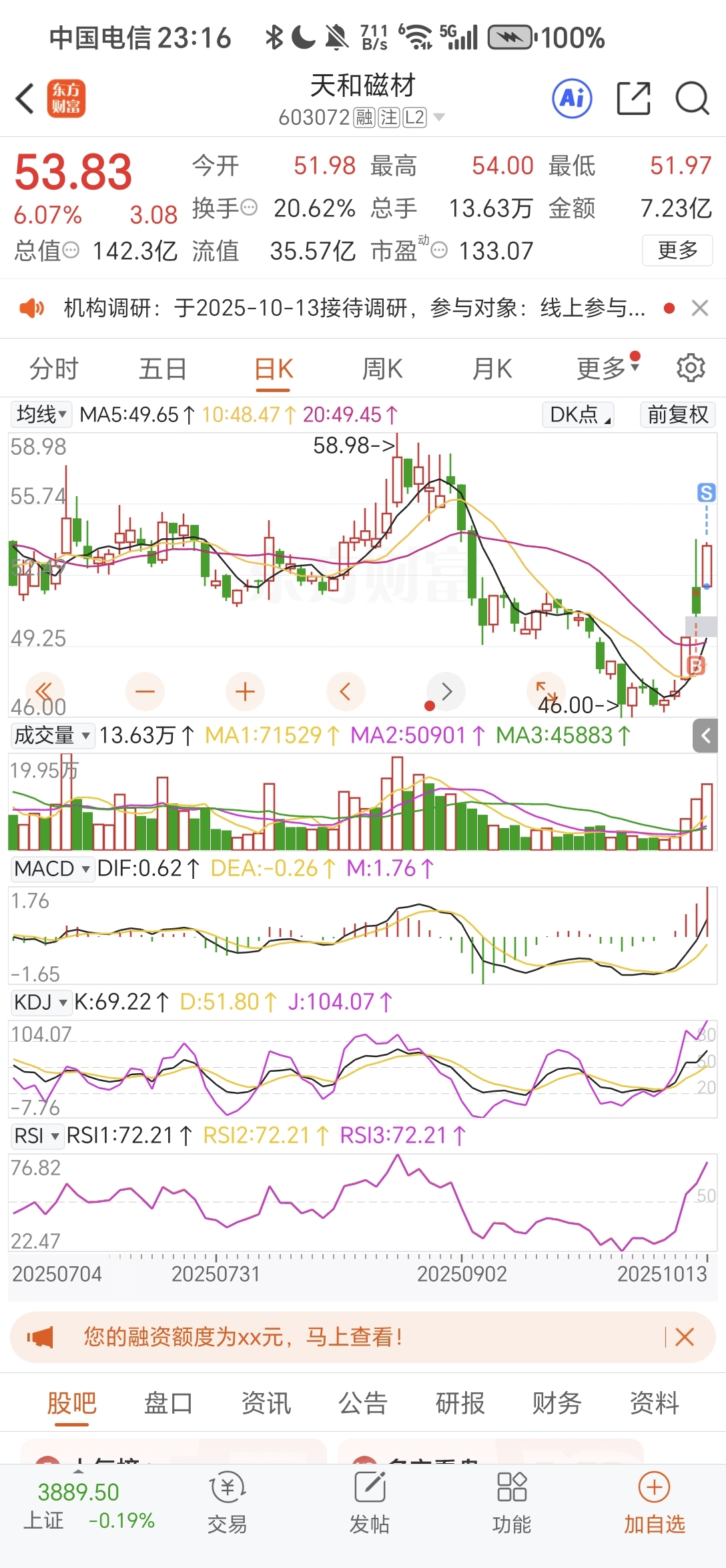 $天和磁材(SH603072)$ 赚37块大洋小试牛刀