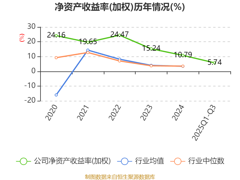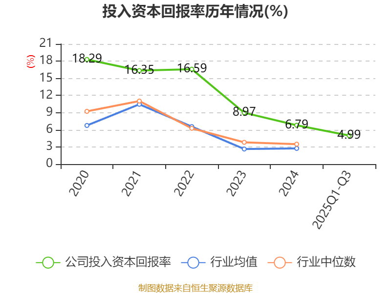 盈利能力方面, 2025年前三季度公司加权平均净资产收益率为5.74%,同比下降2.81个百分点。公司2025年前三季度投入资本回报率为4.99%,较上年同期下降1.1个百分点。