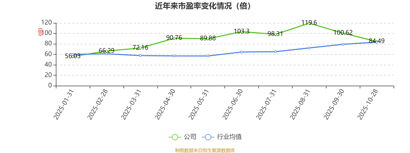 以10月28日收盘价计算,天和磁材目前市盈率(TTM)约为84.49倍,市净率(LF)约5.9倍,市销率(TTM)约5.58倍。
