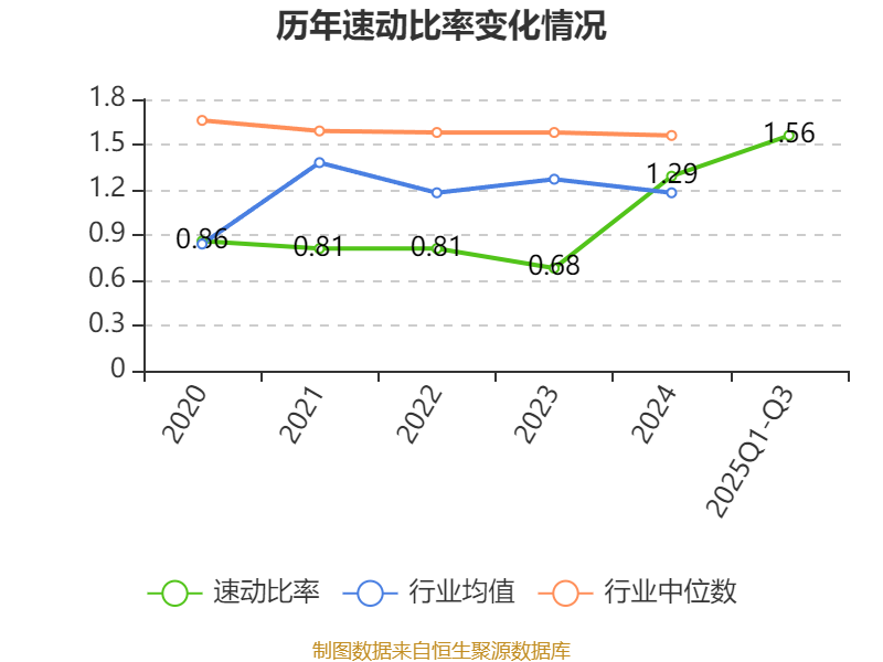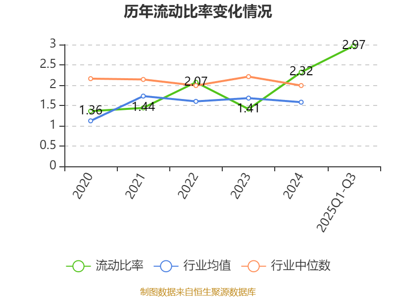 2025年前三季度,公司流动比率为2.97,速动比率为1.56。
