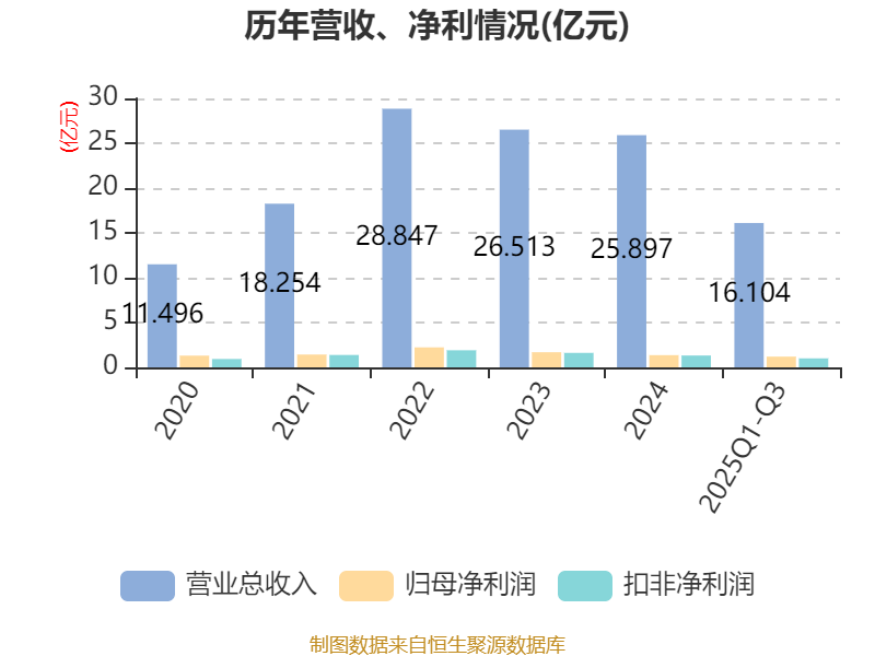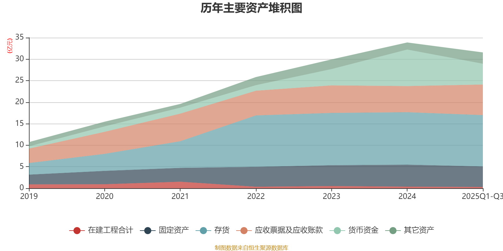 资产重大变化方面,截至2025年三季度末,公司货币资金较上年末减少43.01%,占公司总资产比重下降9.74个百分点;应收票据及应收账款较上年末增加16.89%,占公司总资产比重上升4.56个百分点;存货较上年末减少2.25%,占公司总资产比重上升1.76个百分点;其他应收款(含利息和股利)较上年末增加338.54%,占公司总资产比重上升0.98个百分点。