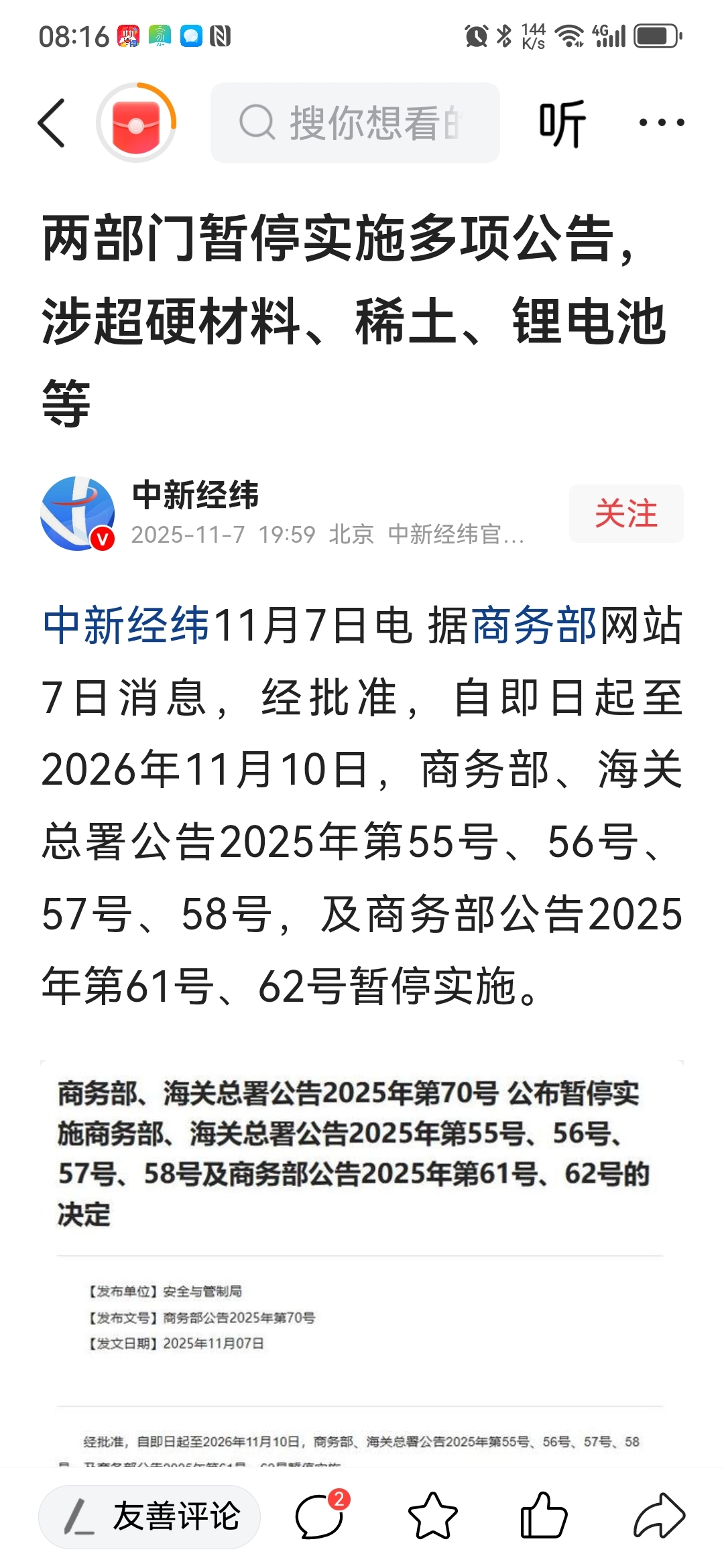 $天和磁材(SH603072)$ 这个消息对稀土是利好还是利空,求大神讲解