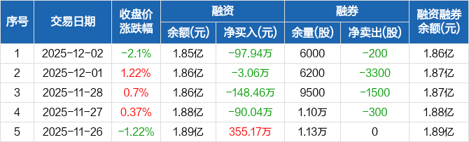 天和磁材:连续4日融资净偿还累计339.49万元(12-02)