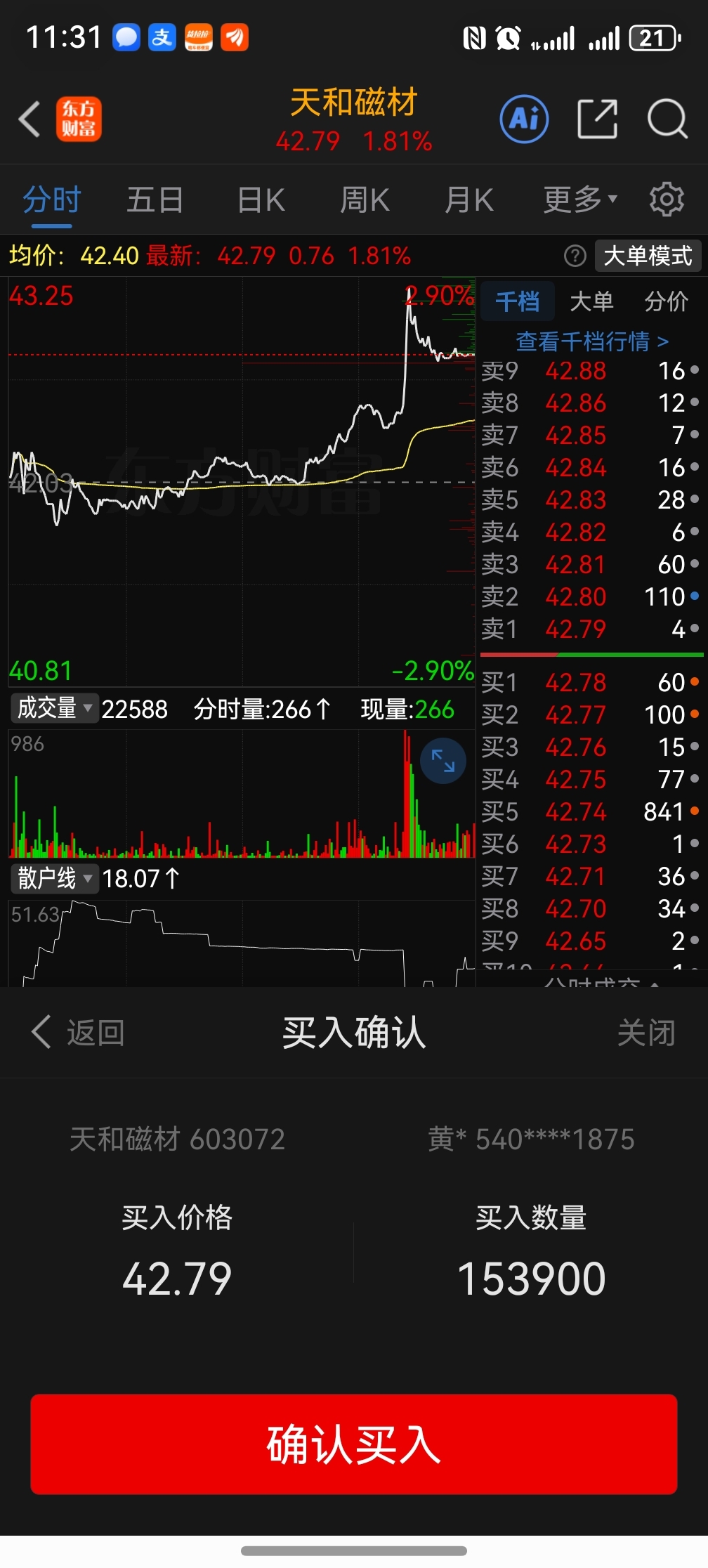 $天和磁材(SH603072)$ 哈哈,还不涨吗,不涨我进来了