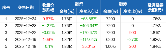 天和磁材:连续4日融资净偿还累计759.11万元(12-24)