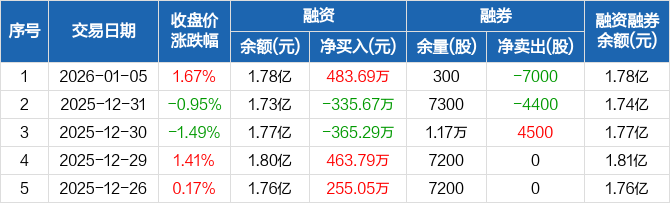 天和磁材:融资净买入483.69万元,融资余额1.78亿元(01-05)