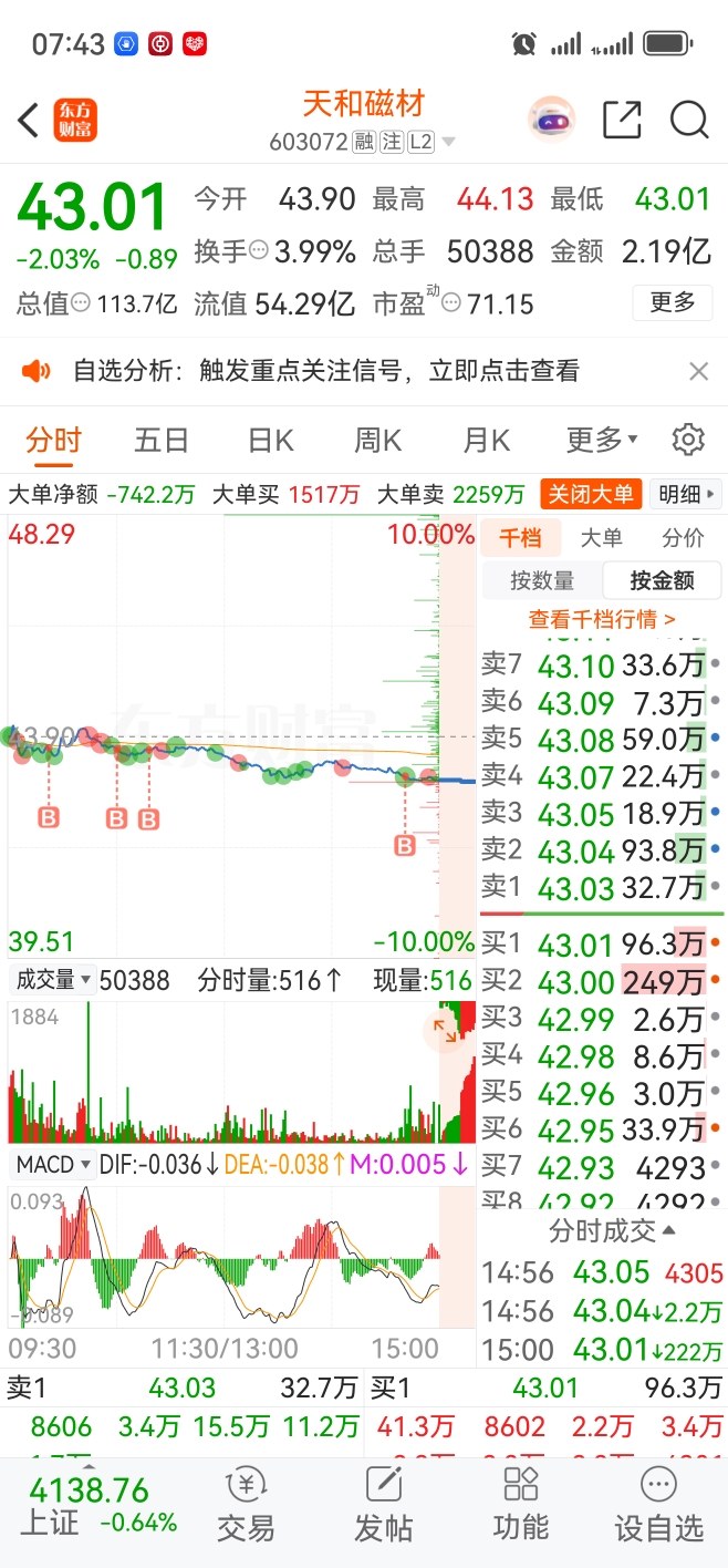 $天和磁材(SH603072)$ 哎你没商量