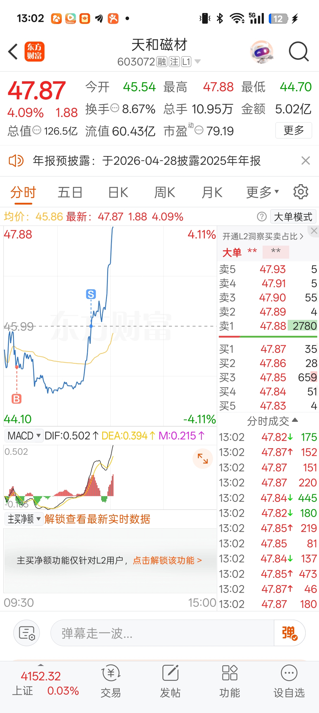 $天和磁材(SH603072)$ 连续2天都踢飞