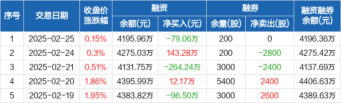 热威股份:融资净偿还79.06万元,融资余额4195.96万元(02-25)