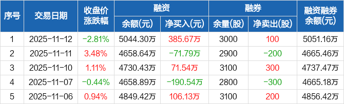 热威股份:融资净买入385.67万元,融资余额5044.3万元(11-12)