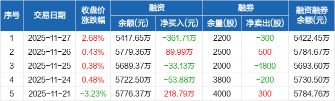 热威股份:融资净偿还361.71万元,融资余额5417.65万元(11-27)